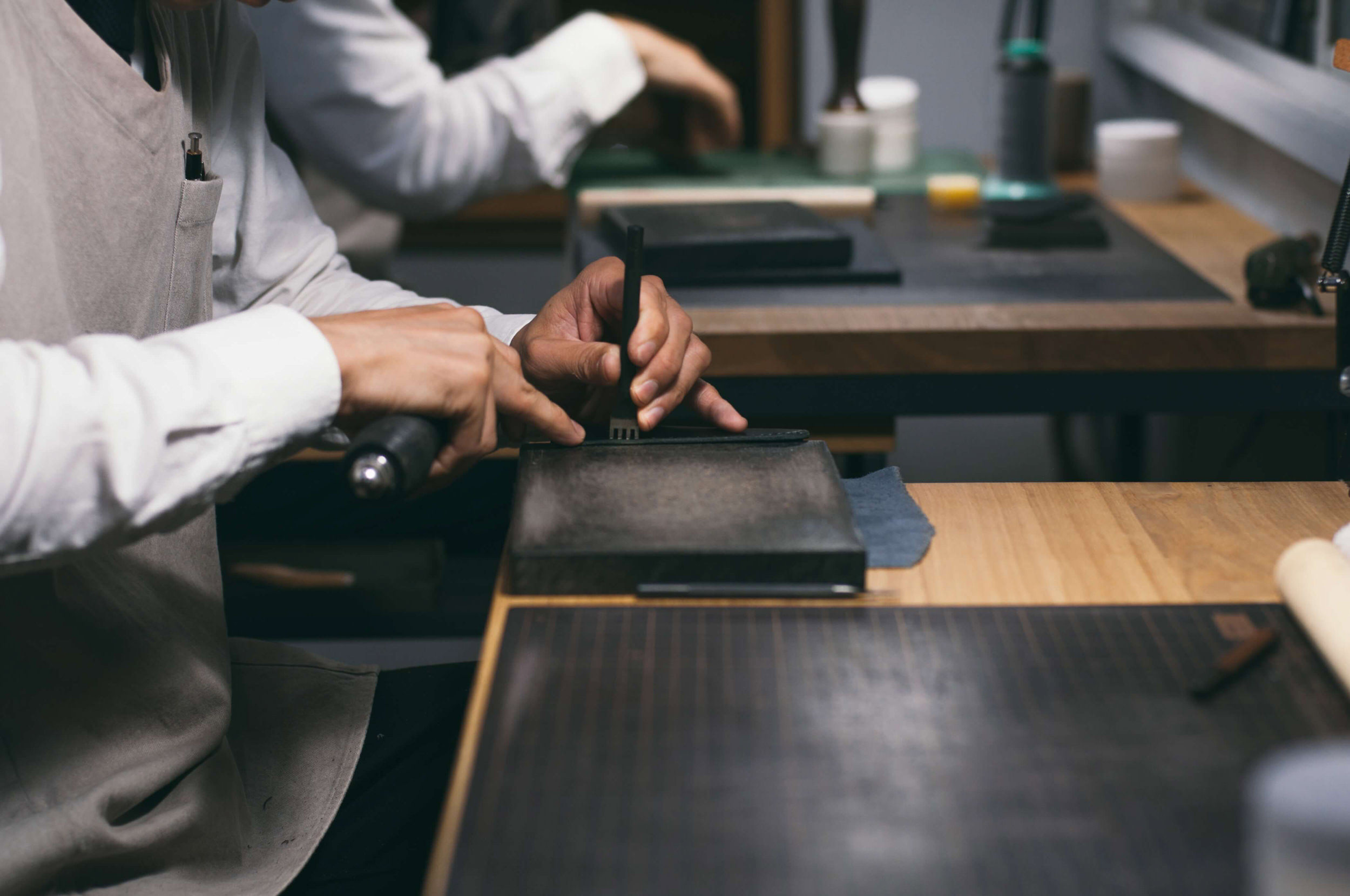リュトモスでは一部の布製品を除き、全てのアイテムがミシンを使わない「手縫い」で仕上げられています。