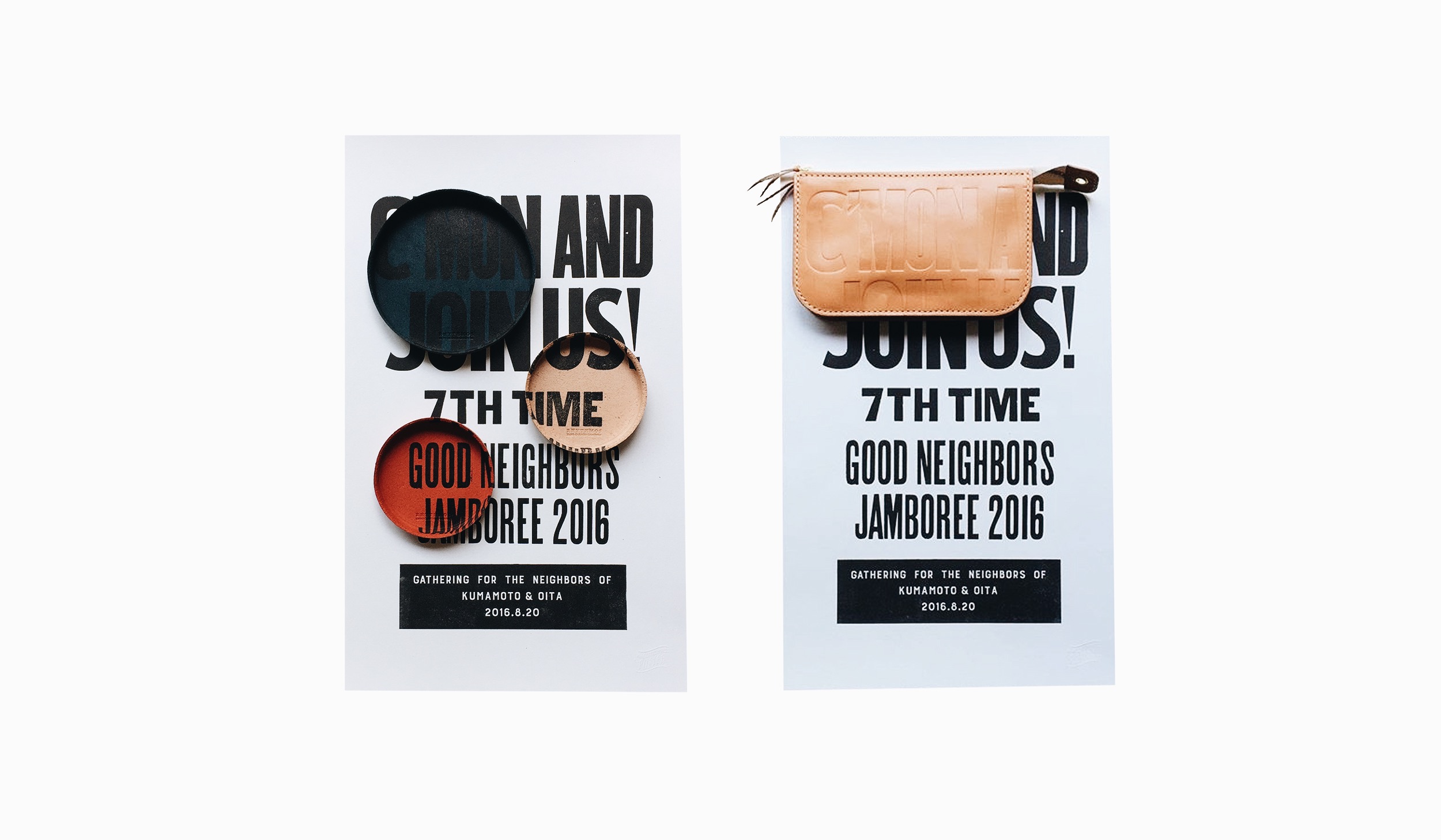 GNJ2016×NINE LETTER PRESSのコラボレーションポスターに使用している版を、革の表面にプレスしたものを素材として、リュトモスの代表作[Zip]を製作しました。