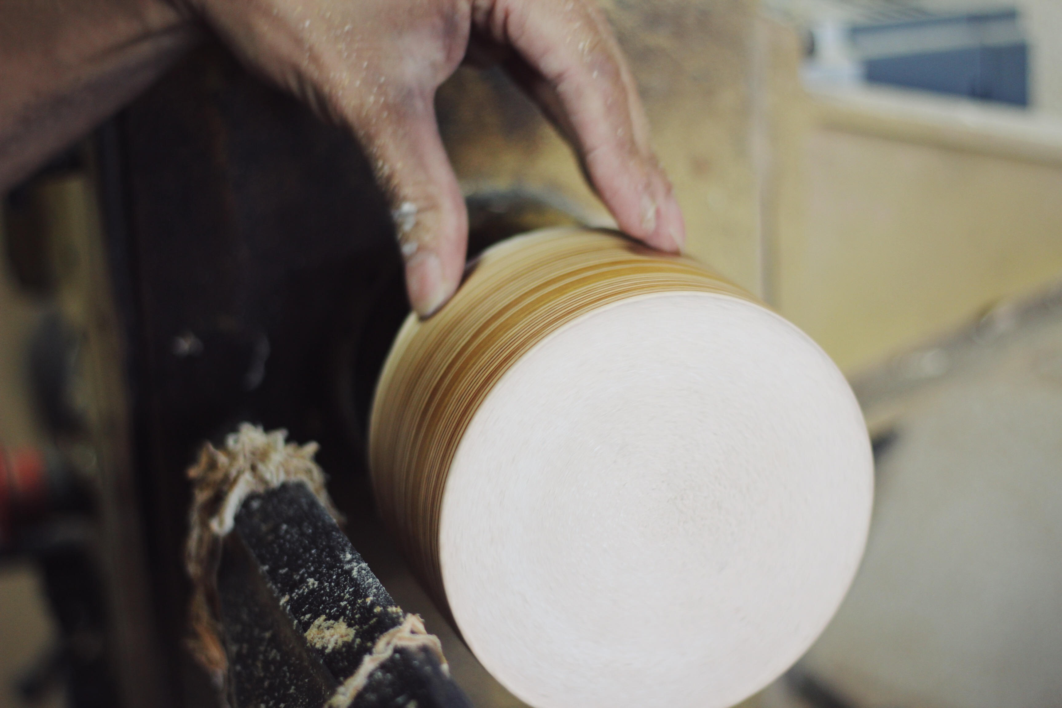 東市来の工房にて、木工旋盤を用いて主に木の器やオブジェなどを制作しています。