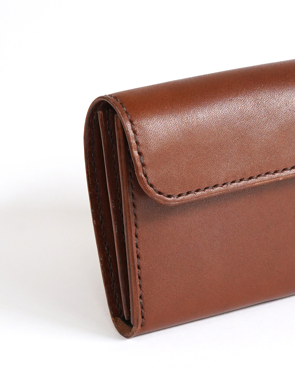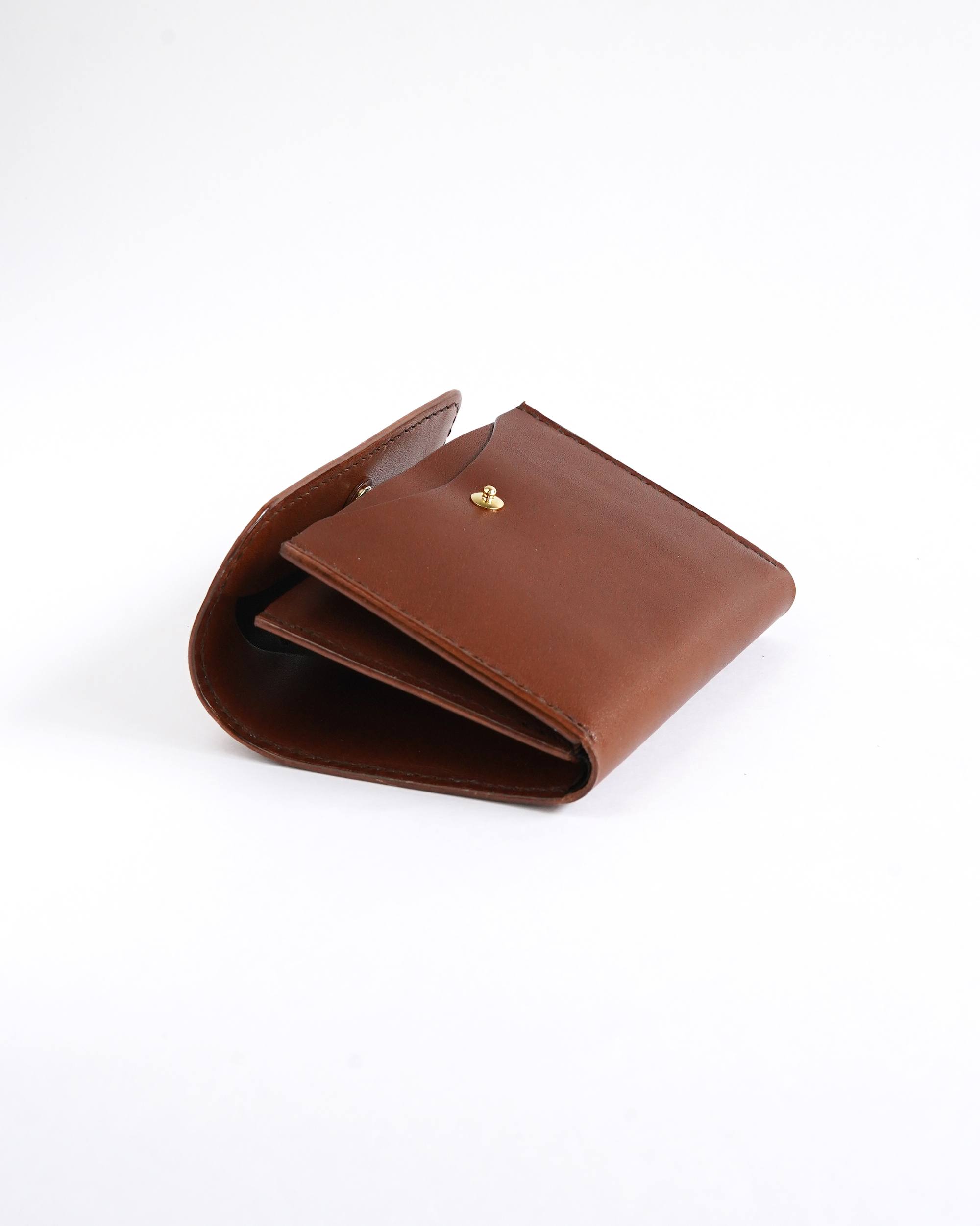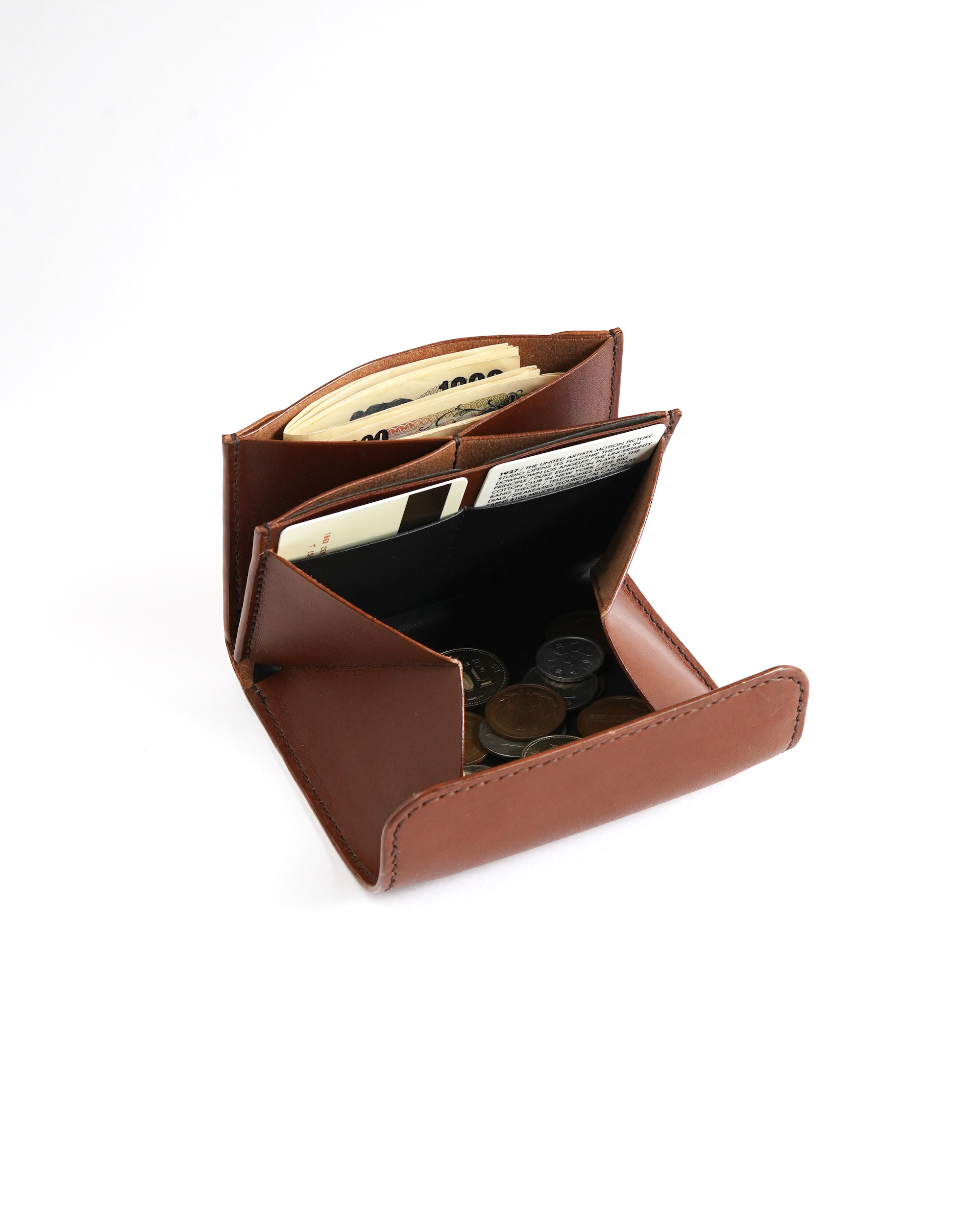 吊り込みという技法を用い、蓋を自然と内側にカールさせることで小銭が滑り落ちないように工夫されており、コインポケットの内部に黒いインナーを採用することで大きく開げた際にも上品な印象です。