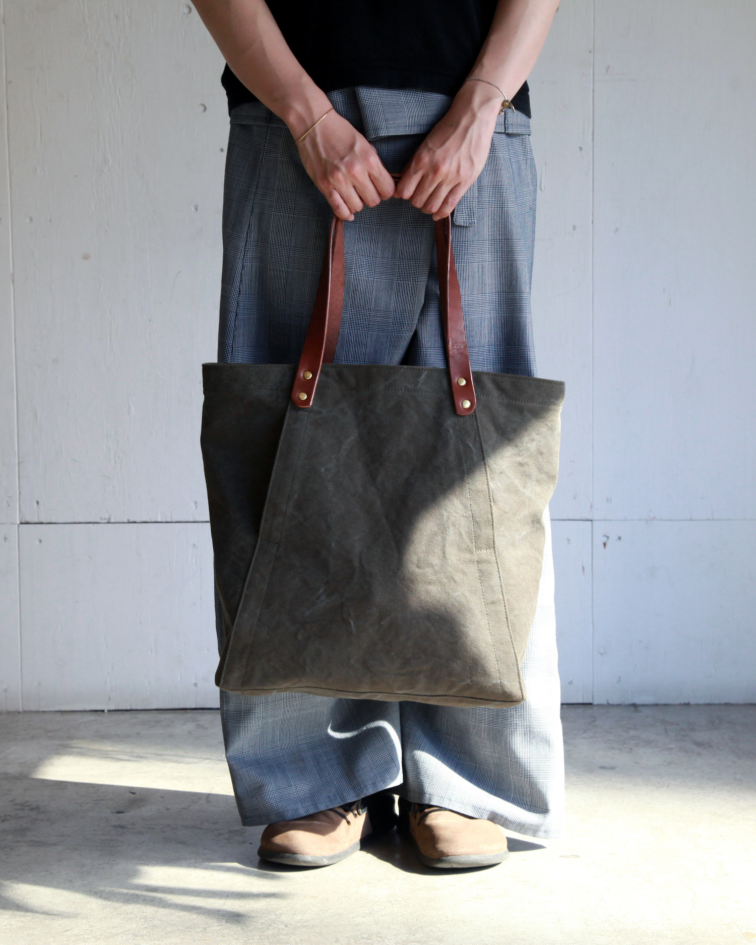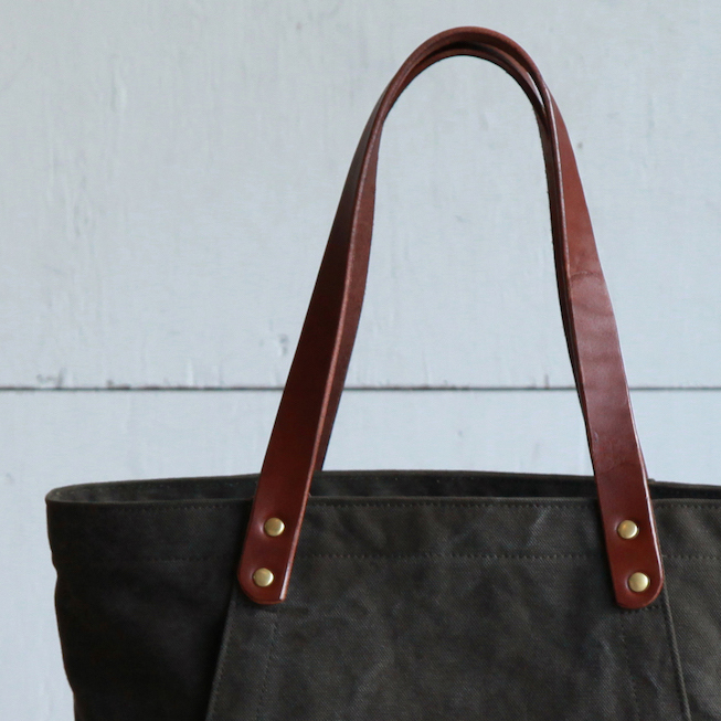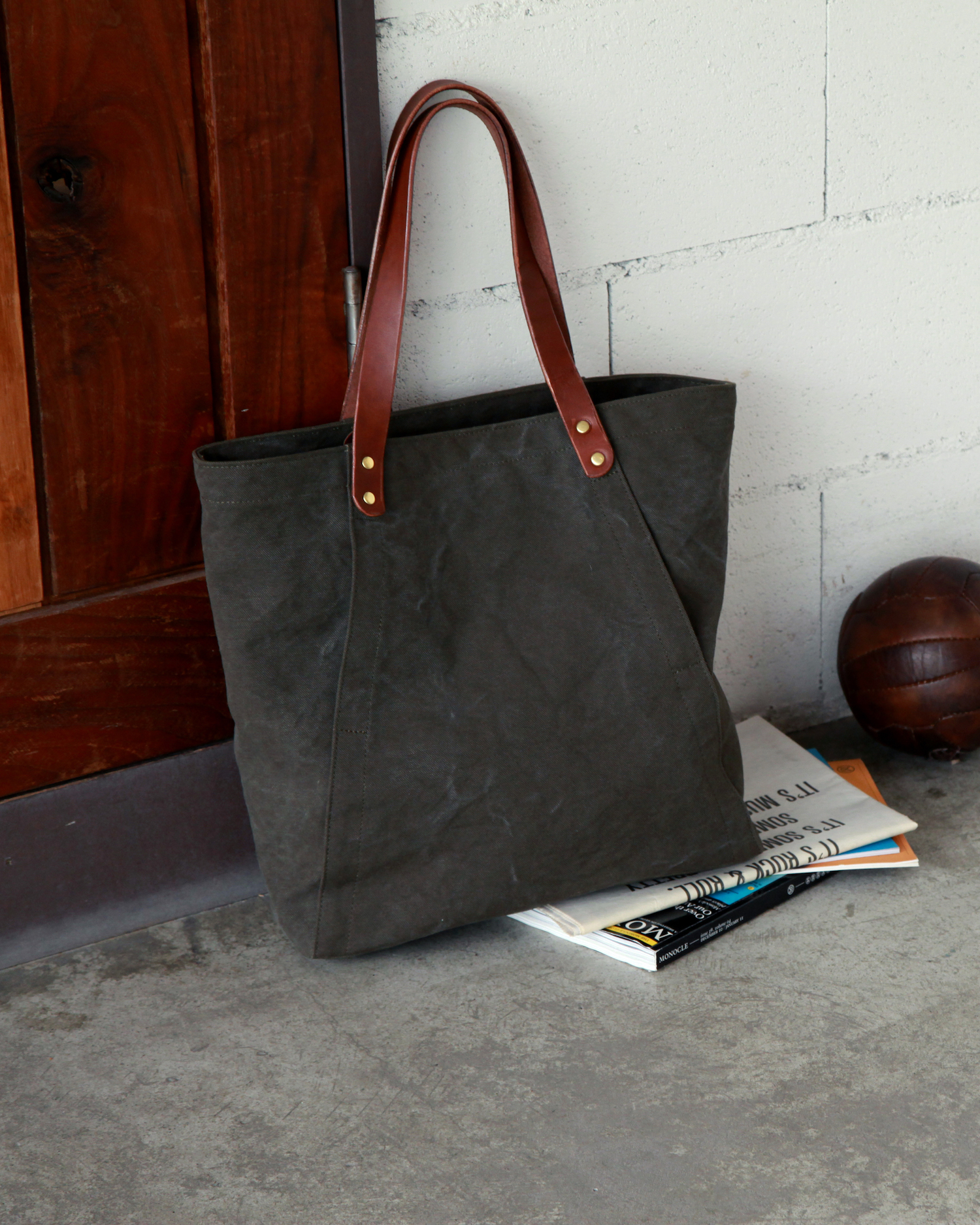 本体に使われているコットンキャンバスは、6号帆布というとても厚手で丈夫な素材ですが、使い始めから持ちやすいように、帆布生地の繊維を柔らかくするための作業を重ね、くったりと柔らかい手触りに仕上げてあります。