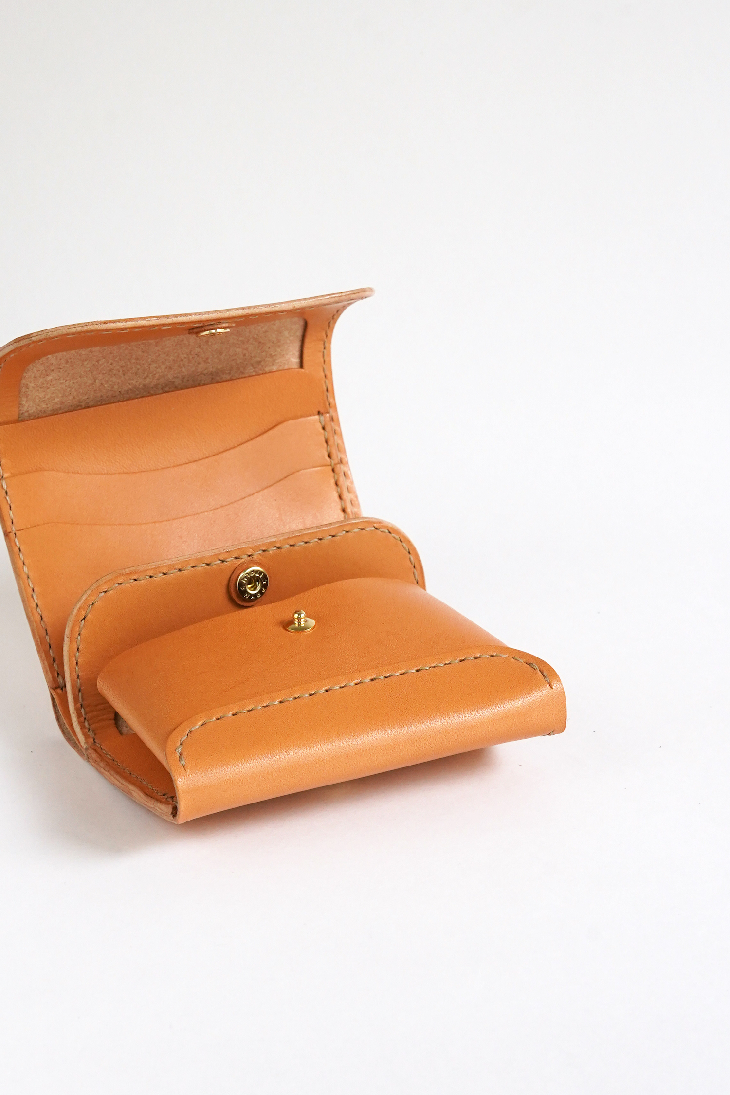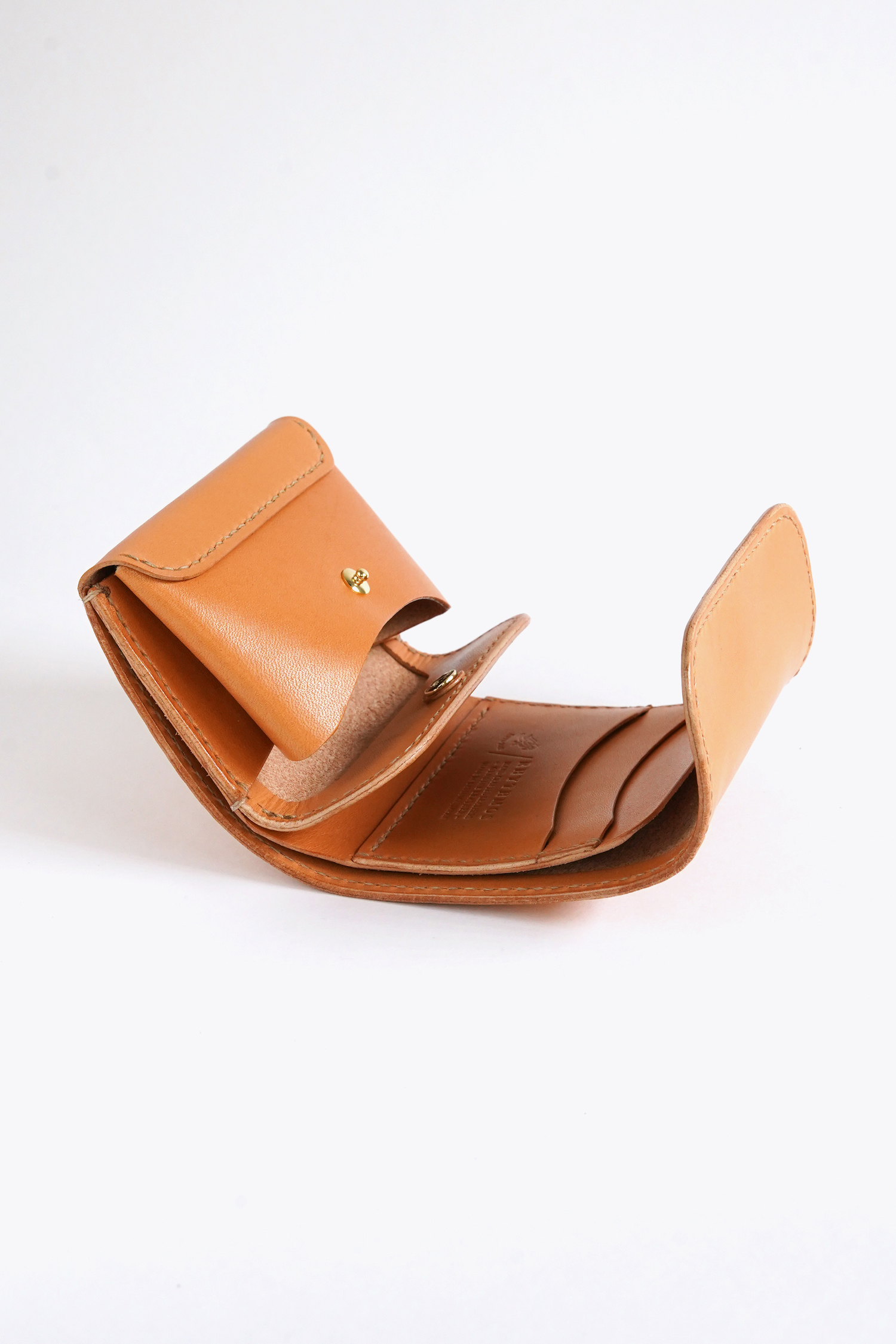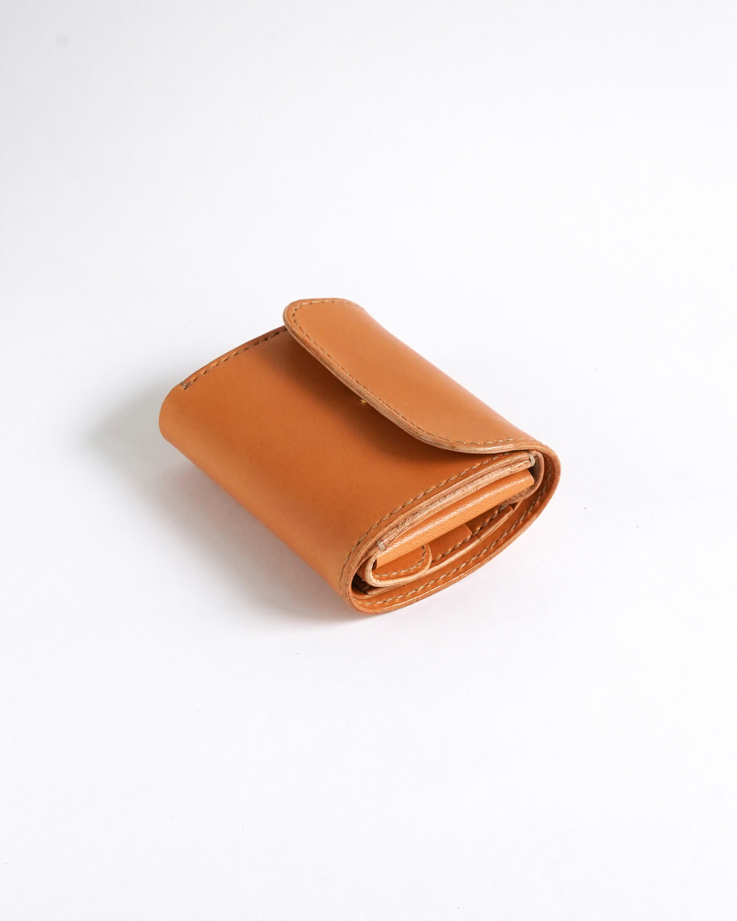 必要最低限の小銭、お札、カードが収納でき、お札は伸ばした状態で出し入れが出来る三つ折り構造です。