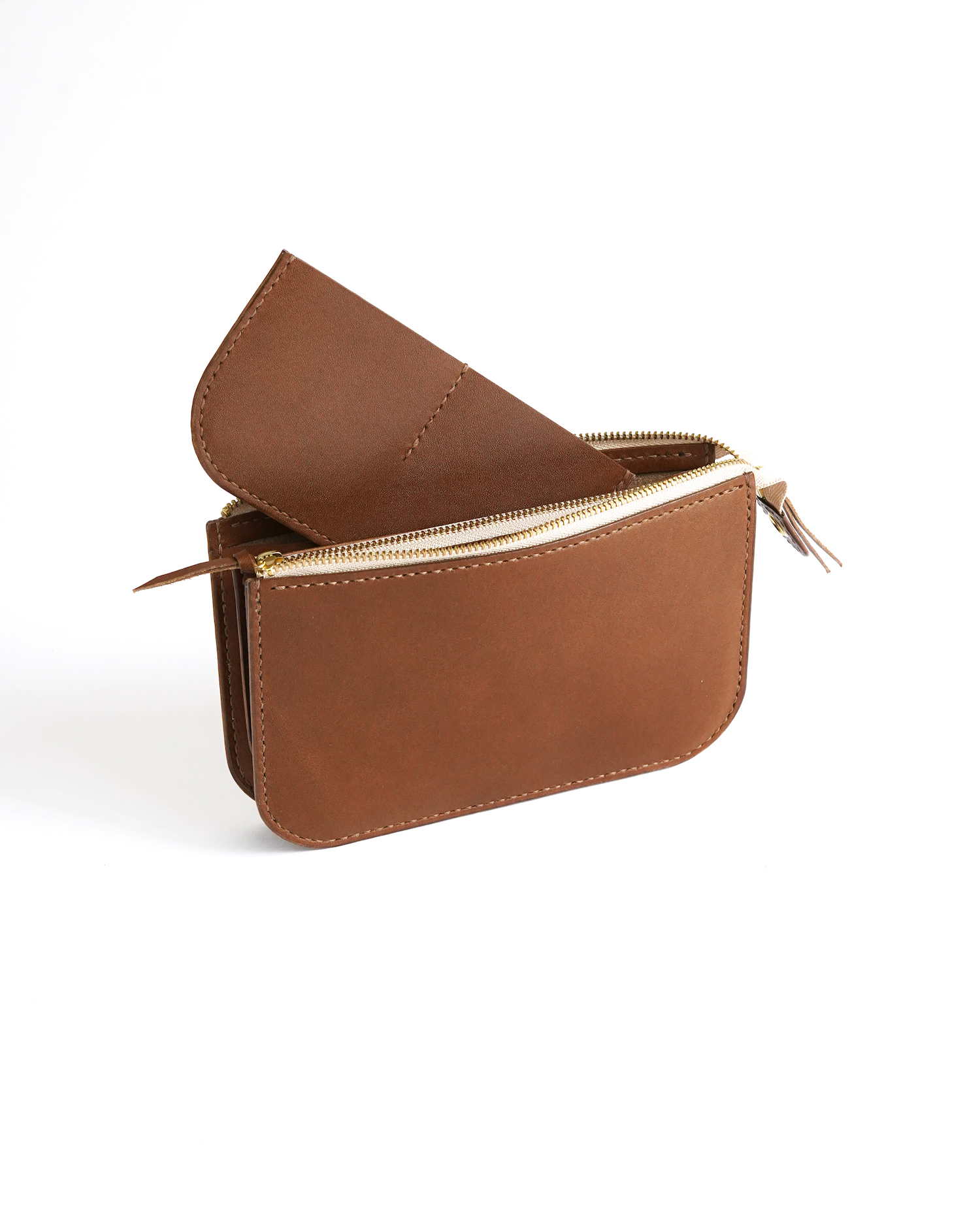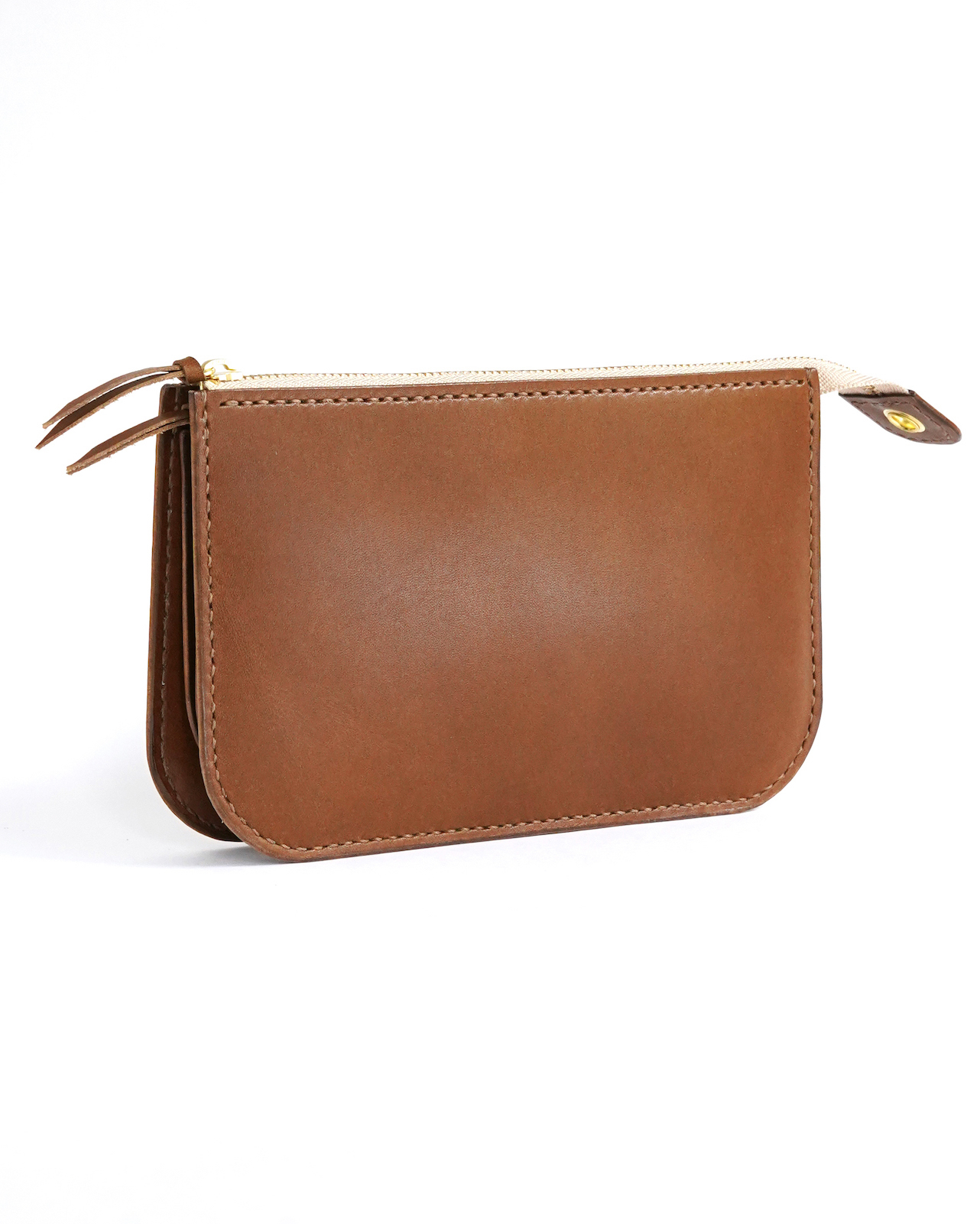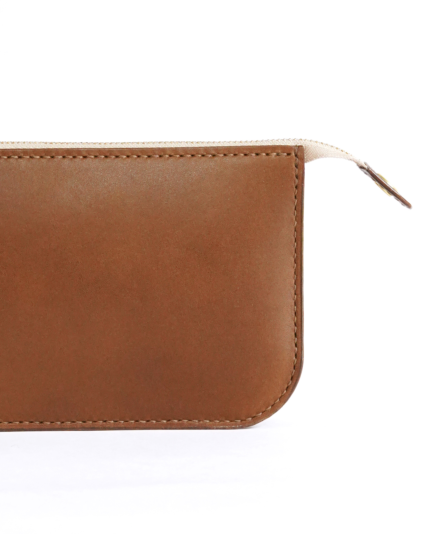 ポーチ型のシンプルなフォルムですが、横幅が少し短めなのは、お札に合わせたサイジングのため。