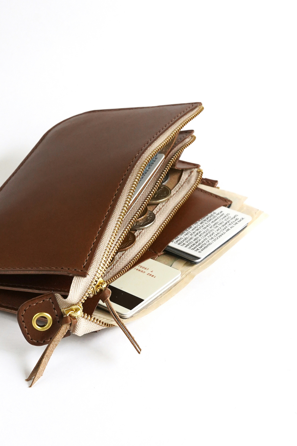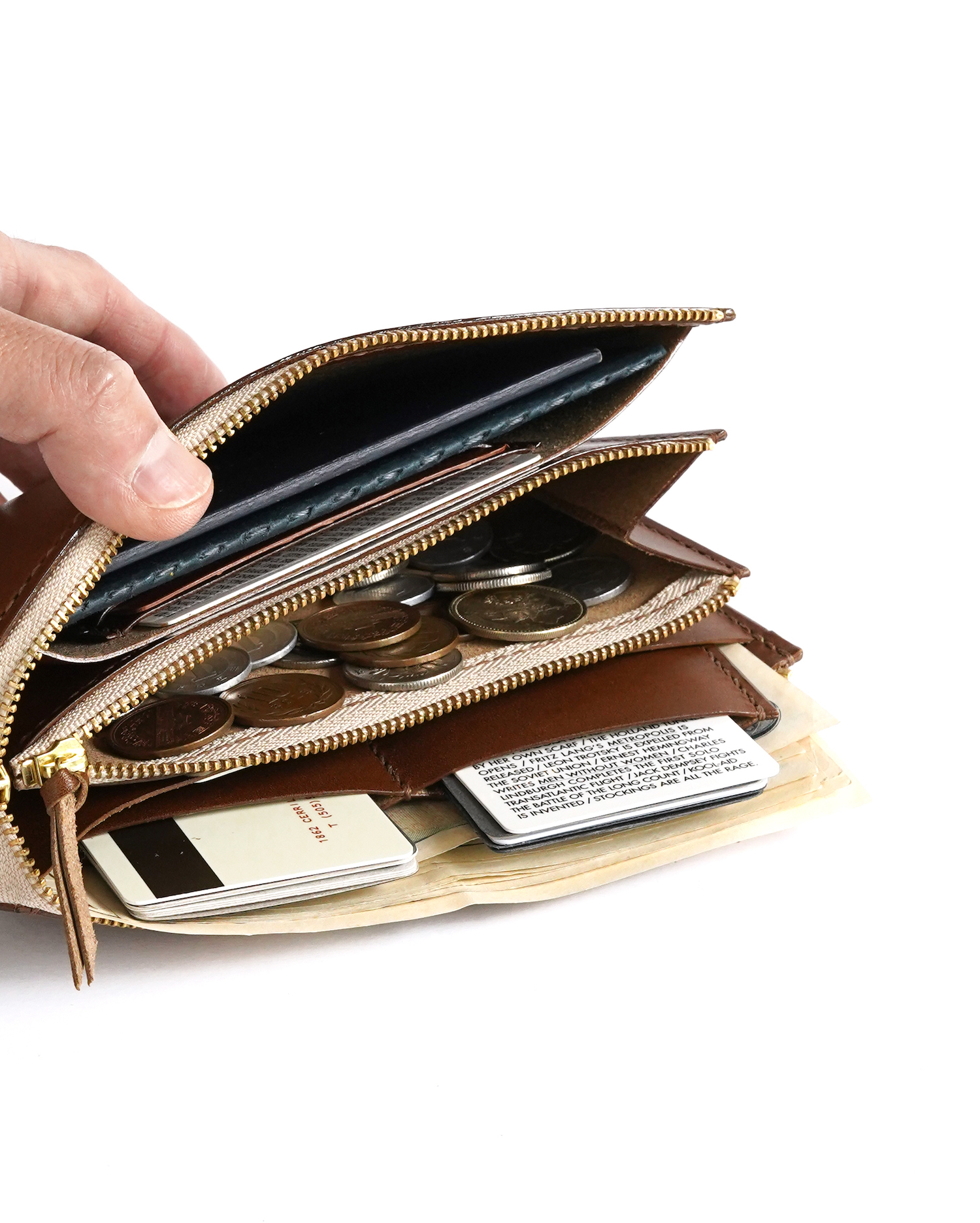 リュトモスで定番のジップLは、名前の通りジッパーで開け閉めを行うお財布で、パーツを極限まで少なくしたオリジナルの構造により薄く軽く持つことが出来ます。